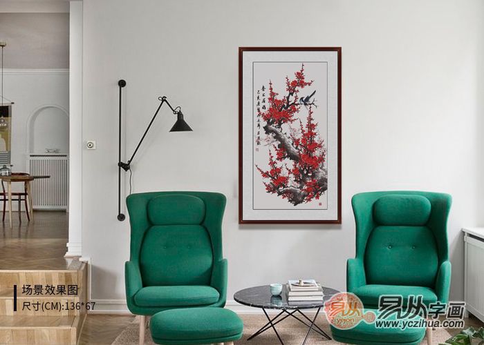 “人赋红梅少,予诗为补遗。霞融姑射面,酒耻寿阳肌。太洁遭时妒。独醒为众疑。漫随春色媚,自保岁寒姿 ”。红梅也是中国文人喜欢呤咏的对象,画作和诗歌很多。餐厅悬挂一幅红梅图,花枝繁盛,如火如荼,给家居生活带来了几分喜气之气。