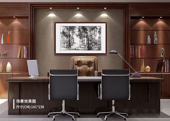 从古至今竹子历来就备受人们喜爱,它四季常青,虽不粗壮,但却正直,虽有竹节,但却不止步,是虚心、有节、进取、高雅等人格品质的象征,做人当如竹,高风亮节,谦逊豁达,拼搏向上,办公室挂一幅竹子图,既可以表现自己卓尔不凡的情趣或者作为品德的鉴戒,又点缀了企业的文化和环境,是众多人们的选择。