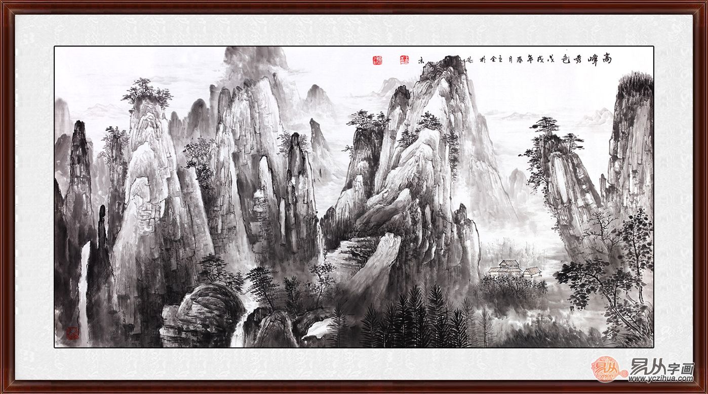 千峰竞秀 知名画家王立全水墨山水《高峰秀色》来源:易从网