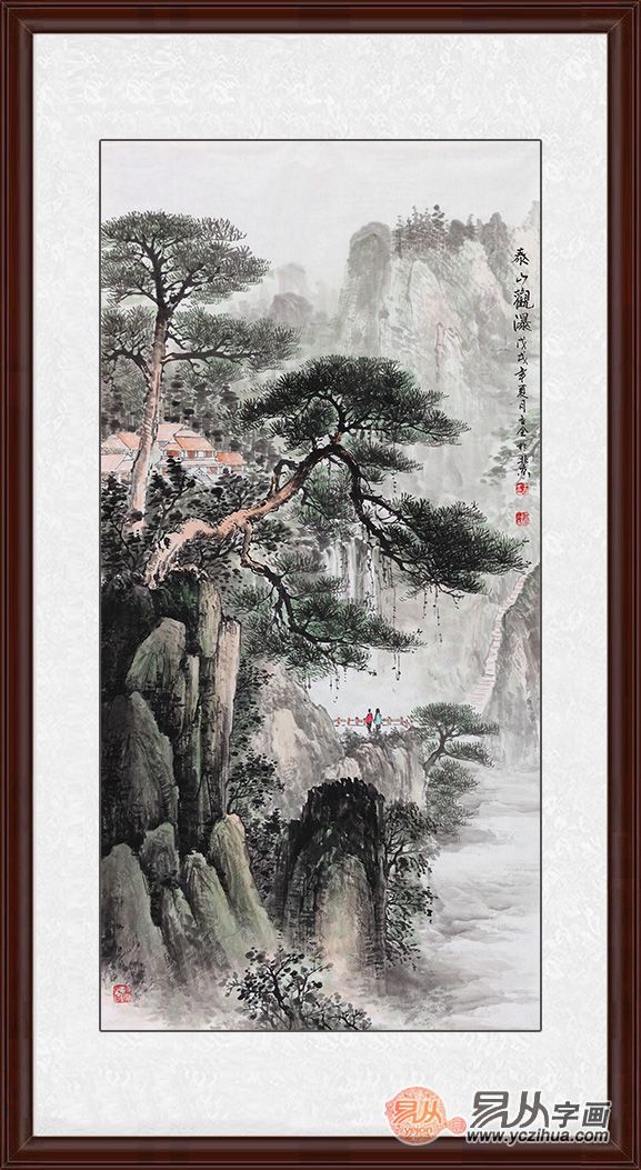 王立全竖幅新品山水画《泰山观瀑》 来源:易从网