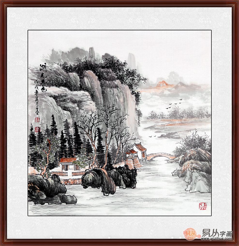 实力派山水画家王立全斗方力作《湖光春色》来源:易从网