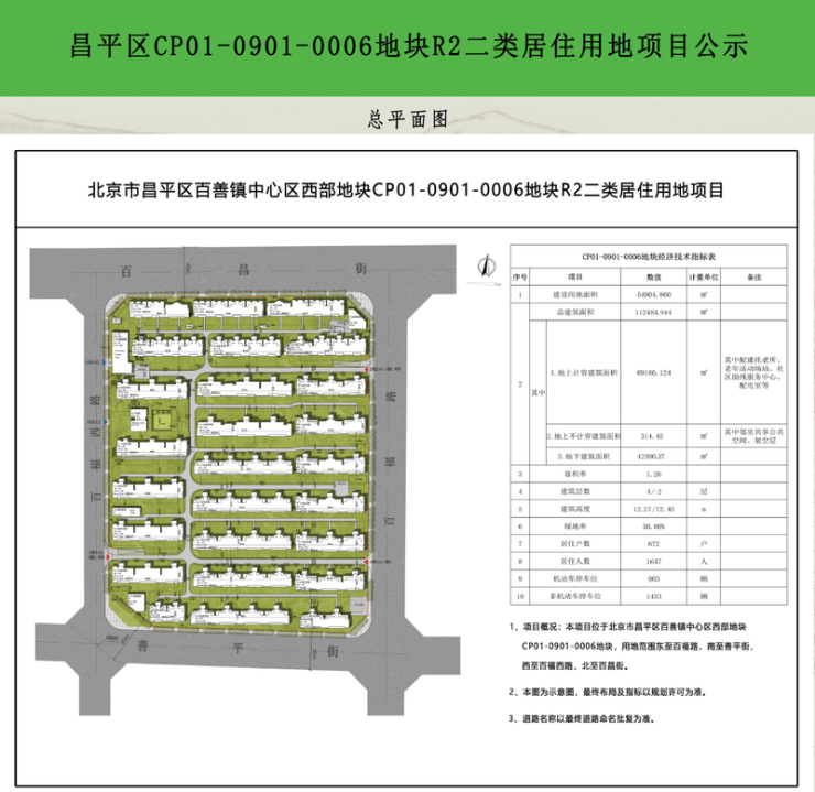 此次调规规划的是项目二期,即0006地块。根据北京市规划和自然资源委员会昌平分局发布的公示显示,二期项目原规划总建筑面积116405.244平方米,其中地上建筑面积69180.124平方米,地下建筑面积47225.12平方米。为提升项目居住品质,打造人民满意的“好房子”,拟按照《北京市平原多点地区“好房子”规划管理相关技术要点(试行)》对0006地块进行重新设计调整,方案优化后项目总建筑面积112484.944平方米,其中地上建筑面积69494.574平方米(其中计容面积69180.124平方米),不计容面积314.450平方米(含邻里中心234.320平方米,架空层80.130平方米),地下建筑面积42990.37平方米。