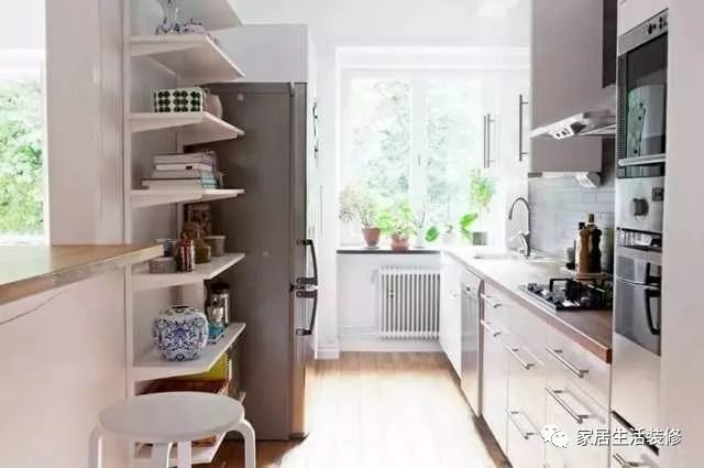 由于考虑到小户型,设计师配了能放餐具的橱柜,简单大气,有了这些收纳餐具的小橱柜,再也不怕小户型厨房乱糟糟的,左边做了一些小框架,前面也说了业主是搞艺术的,业主希望在家的每个角落都能看到装饰画。