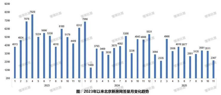 2024年北京新房全年成交37178套,为近6年最低,如果2025年12月无法完成约5,153套的成交量,全年成交套数将低于2024年,成为近7年最低。