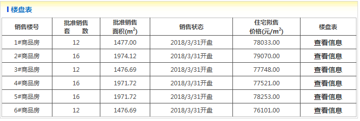 璟秀欣苑小区1—6号楼均价在76000元/平方米—78000元/平方米,8—10号楼均价在56000元/平方米—59000元/平方米。