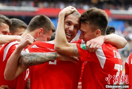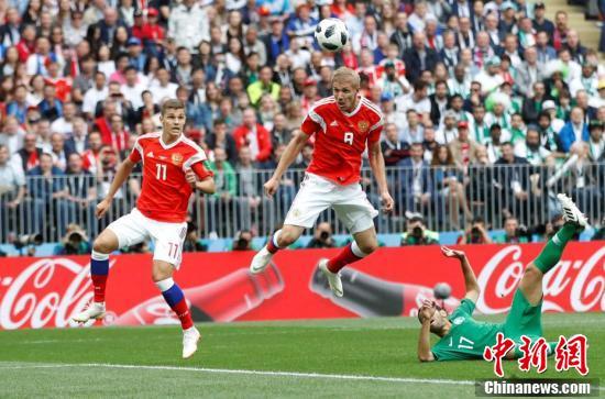 第11分钟,俄罗斯队利用角球机会将球打入禁区,沙特队后点防守漏人,8号加辛斯基头球破门为俄罗斯队首开纪录。这也是本届世界杯的首粒进球。