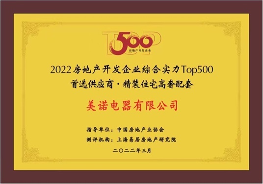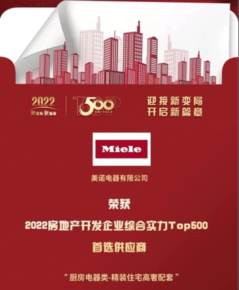 德国美诺Miele荣膺2022房地产开发企业综合实力TOP500优选供应商