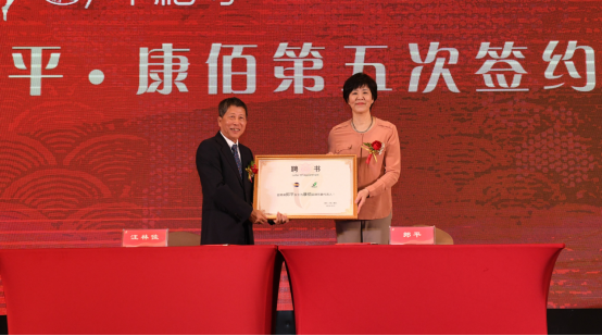 康佰(中国)集团董事长汪林佳先生与郎平女士在现场,宣告康佰人不忘初心,会一如既往的为信赖康佰的顾客朋友带来健康与欢乐。