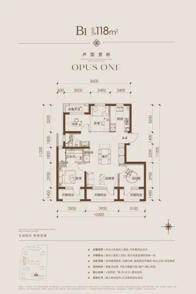主力户型之一的118平米四居,是本项目的入门四居户型产品。该户型的优势如下: