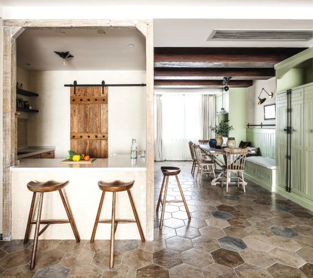 ◭设计师一方面尽可能地选择朴素和原始视觉感的材料装饰墙、顶、地面等,营造出不经修饰的自然美,另一方面充分考虑空间的合理规划,各种生活场景的动线和功能实现,让“穴居”感受更舒适温馨。