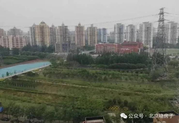 南排楼栋正对着高压塔阵。说是奥运会时期修的备用线路,从来没通过电,但那几座铁塔立在那儿,视觉上和心理上都不可能完全忽略。