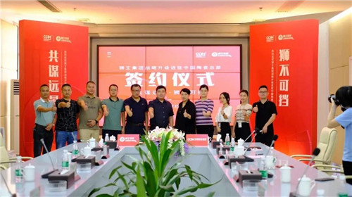 7月17日,在以“共谋远景,狮不可挡”为主题的狮王集团战略升级进驻中国陶瓷产业总部基地签约仪式上,广东狮王陶瓷有限公司总经理杜泽帅表示,佛山是中国陶瓷的制高点,而以建设广东狮王瓷砖营销中心展厅的形式入驻中国陶瓷产业总部基地正是狮王瓷砖打造全国品牌和迈出全球化步伐的重要一步。中国陶瓷产业总部基地运营总经理汤洁明表示,狮王瓷砖的入驻对中国陶瓷产业总部基地来说是很好的支撑,从品牌影响力到展厅展示,狮王瓷砖将为中国陶瓷产业总部基地增添更多的光彩。佛山市陶瓷行业协会秘书长尹虹则认为,狮王瓷砖在陶瓷制造方面拥有优势,作为产区头部品牌进驻中国陶瓷产业总部基地,是其向全国品牌提升的创新求变做法。