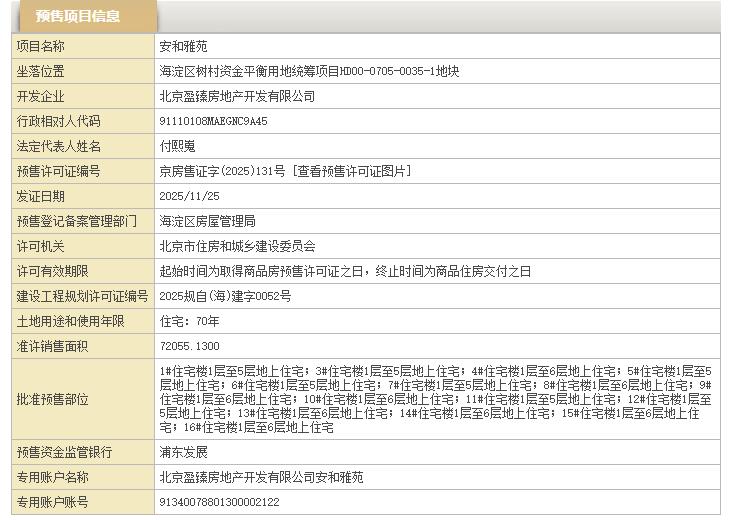 就在上周,位于海淀北五环的中海树村项目取得了预售许可证,备案名为安和雅苑。虽然销售价格已公布,但官方推广案名尚未确定。该项目坐落于海淀区树村资金平衡用地统筹项目 HD00-0705-0035-1 地块,今年 3 月 18 日经过 200 多轮竞拍后,最终由中海地产以 75.02 亿元竞得,溢价率 27.9%,楼面价约 10.23 万元 /㎡,成为北京首个楼面价突破 10 万元 /㎡的住宅用地。项目建设用地面积 39737.8 平方米,地上建筑规模约 7.33 万㎡,地下建筑规模约 5.8 万㎡,容积率 1.6,绿地率 30%,建筑最高高度 18 米。