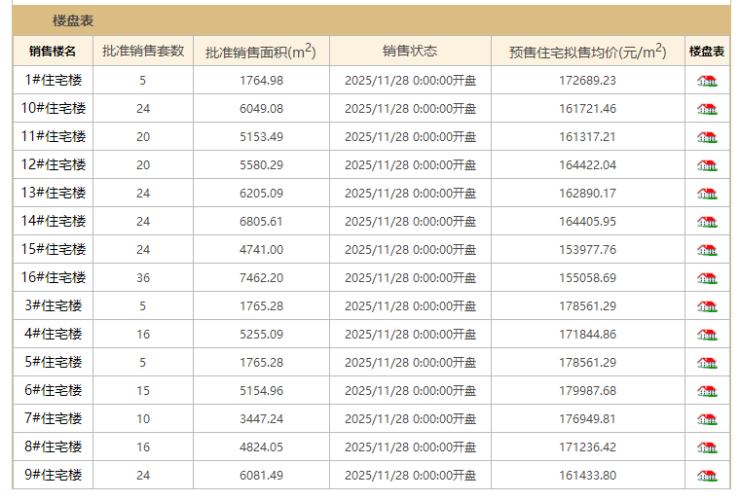 此次获批的房源涉及 15 栋1#、3-16#,共计 268 套,准售面积 72055.13㎡,销售均价15.3 万 - 18 万元 /㎡。其中,15#和 16#拟售均价最低,均为 15 万元 /㎡+;6#有套 364.13㎡下叠房源,拟售均价最高,约 18 万元 /㎡。截至目前,2# 楼 10 套房源尚未取证。