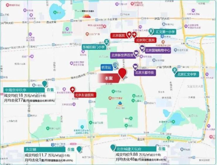 走出家门几步就是地铁7号线桥湾站,换乘5号线也不过磁器口站溜达一下的距离。这里可不是只有交通便利,北京医院、同仁医院、友谊医院环伺,优质医疗资源在3公里半径内密集覆盖。