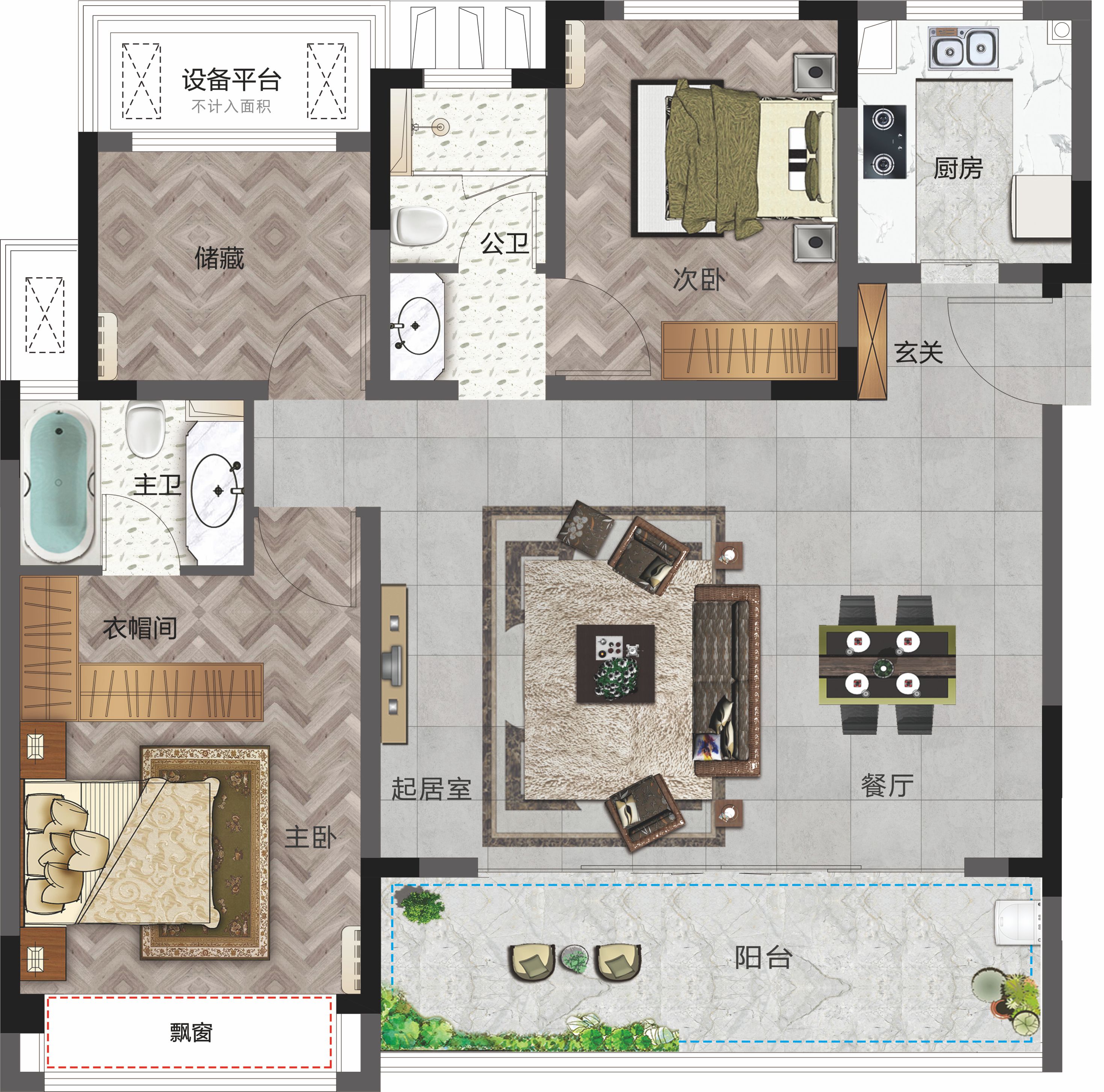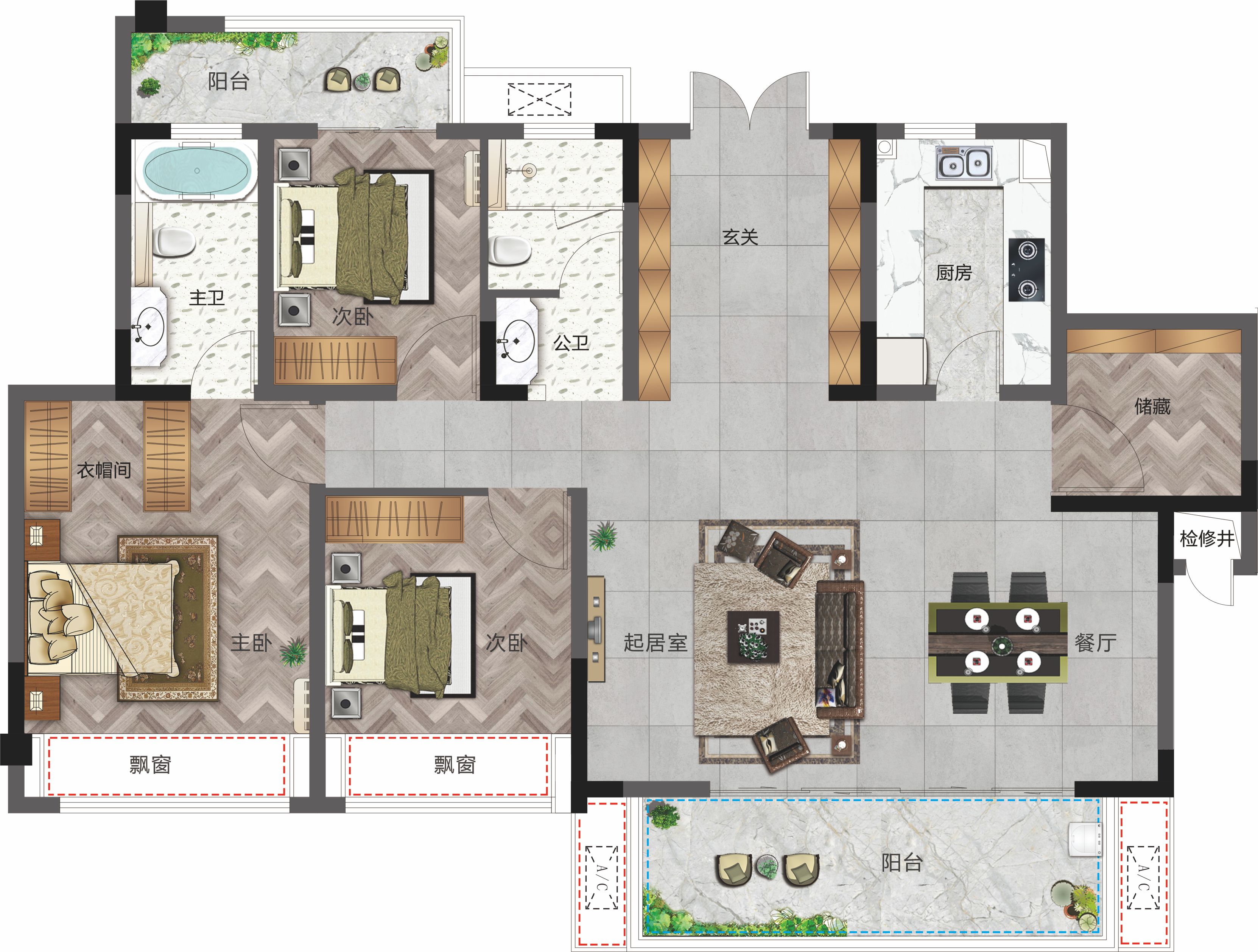在售 南北通透 带衣帽间 主卧带卫 干湿分离 卧室带阳台 观景飘窗 双阳台