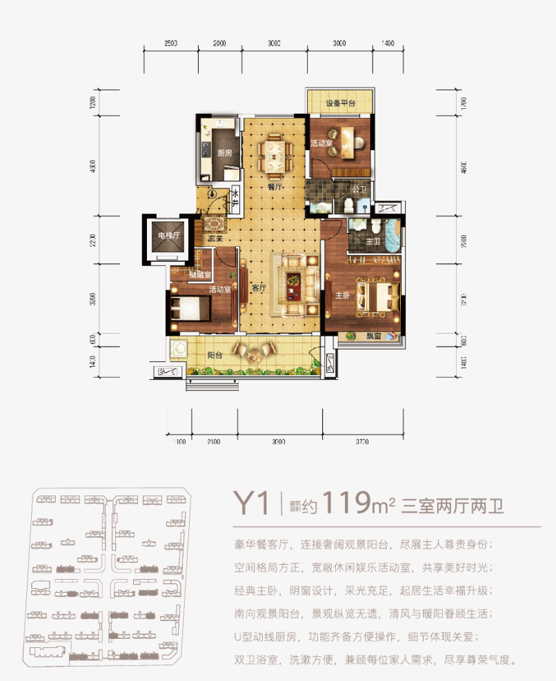 3室2厅2卫-Y1-洋房-三室两厅两卫-119㎡