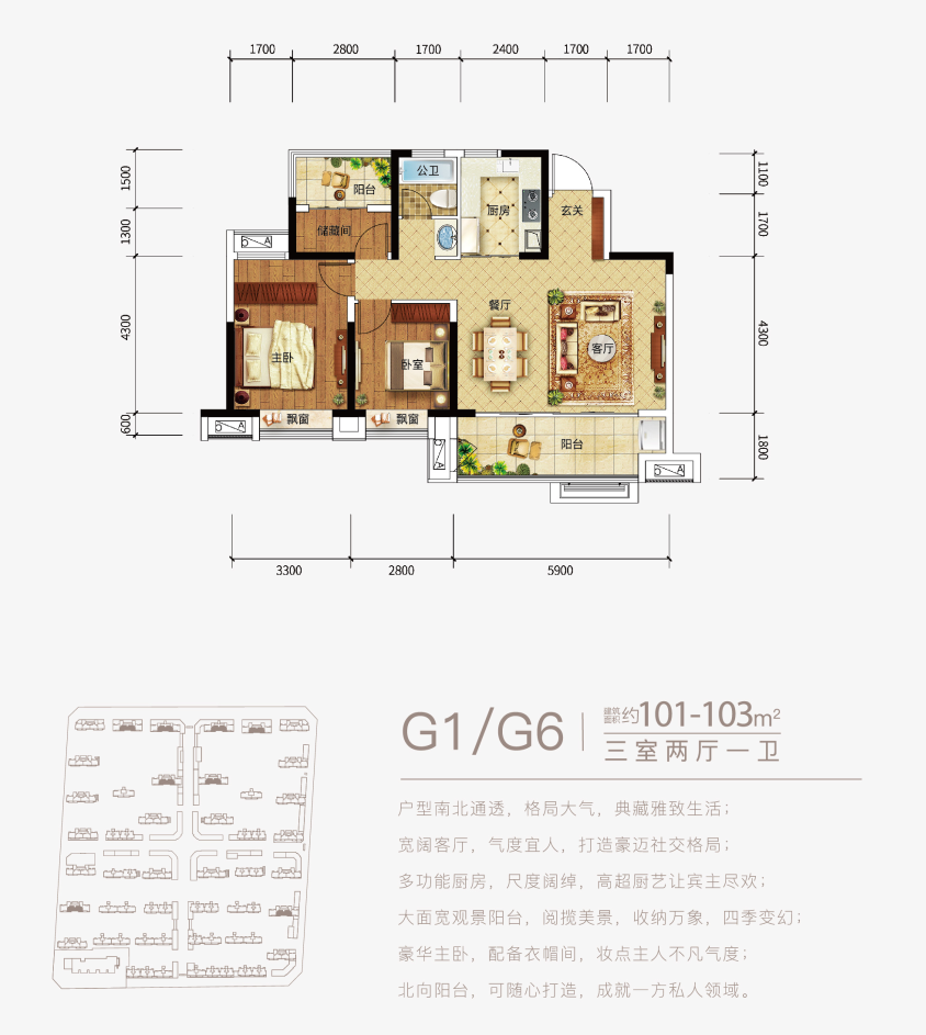 3室2厅1卫-G1G6-101-103㎡-三室两厅一卫