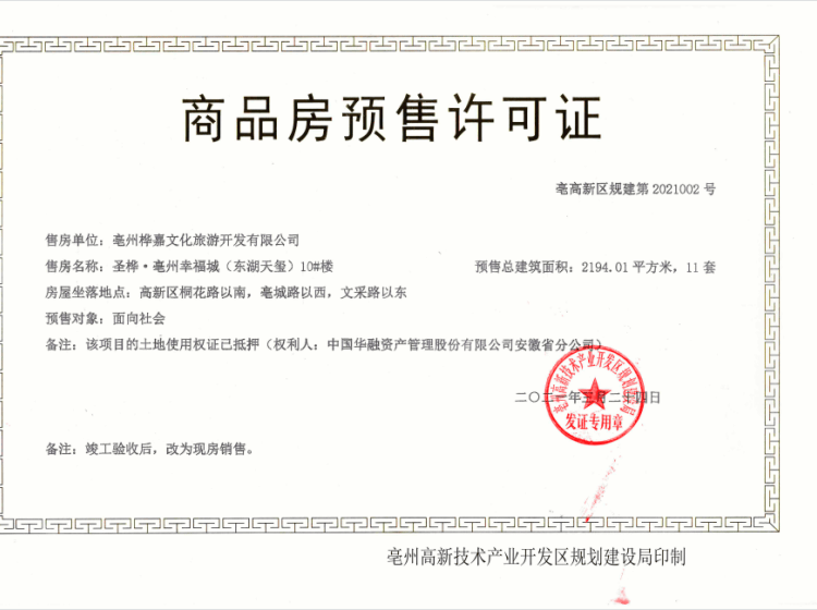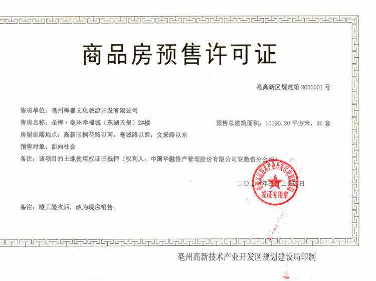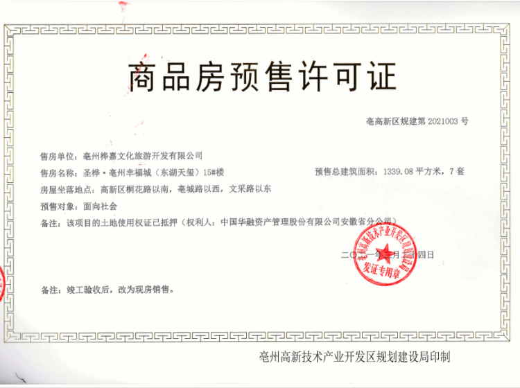- 亳住建预售第2019300号 详情发证时间绑定楼栋