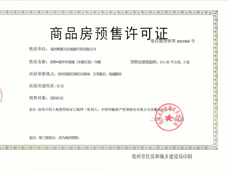 - 亳住建预售第2021066号 详情发证时间绑定楼栋