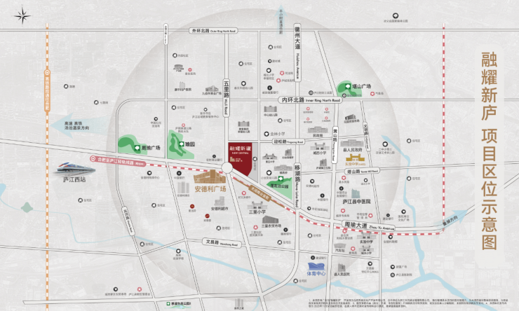 融耀新庐坐拥巢湖市东城新区黄金地段,周边配套日臻成熟,生活便利度极高。项目距巢湖高铁东站仅5公里,驾车10分钟可达,无缝衔接合肥主城区及长三角城市群。区域内已建成巢湖市人民医院东区分院、巢湖市妇幼保健院等医疗机构,医疗资源触手可及。教育方面,项目3公里范围内覆盖巢湖市东风路小学、巢湖四中等优质学府,并规划新建一所九年一贯制学校,子女教育无忧。
