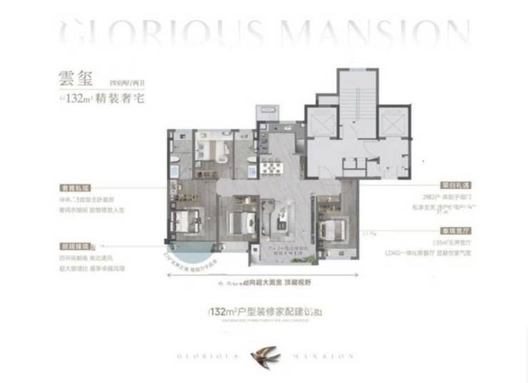 经典四叶草户型119㎡,主卧套房约20㎡,设置有双衣帽柜,客厅是一个开间5米、面积高达约40㎡的大方厅,加上飘窗赠送后,整体空间得房率近乎90%。而143㎡的四室两厅两卫户型采用LDKG一体化设计,餐客阳台无界融合,打造流畅的居家动线,留给生活更多的共享空间。约11.3米南向超大面宽,双卧朝南,采光通风俱佳。主卧套房设计,配备南向飘窗、独卫、双衣帽柜,打造便捷、私密的居住体验。