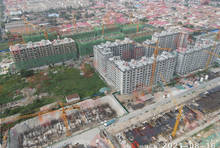 运河樾府位于浮阳南大道与九河路交口东行500米路北,北临晴川路,南临九河路,东起富强大道,西至规划路。项目总占地面积约93632.08㎡,总建筑面积约177986.16㎡,容积率为1.896,由21栋6-9层的花园洋房组成。