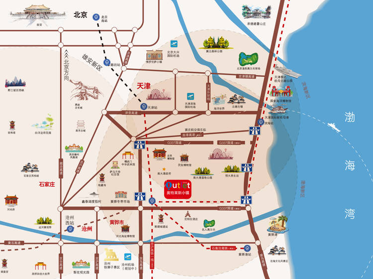 黄骅新城奥特莱斯“芭蕾雨”项目先期投资45亿元,项目建设地点位于黄骅新城核心区,东靠博海公园分布在渤海路两侧,先期占地500多亩,总体规划1000亩。先期总建筑面积约70万平方米,其中商业12万平方,配套住宅58万平方,项目由名牌特区、度假酒店、商务办公、餐饮娱乐、时尚影院、儿童游艺、生态高端居住区组成。是一个集时尚购物、休闲度假、生态宜居为一体的城市新中心。
