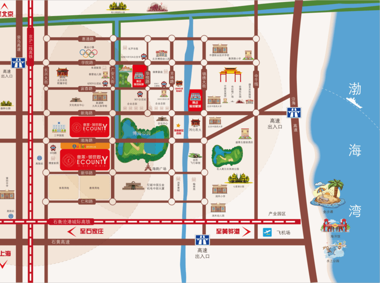 一公里内高铁站、三甲医院、九年制义务学校,博海公园、奥特莱斯小镇商业街区