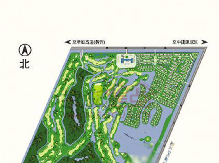 3000亩LINKS风格27洞高尔夫球场、36000平米盛泰瑞廷大酒店(五星级)、9800平米温泉水疗城、68万平米高档住宅社区、350亩中湖水上乐园