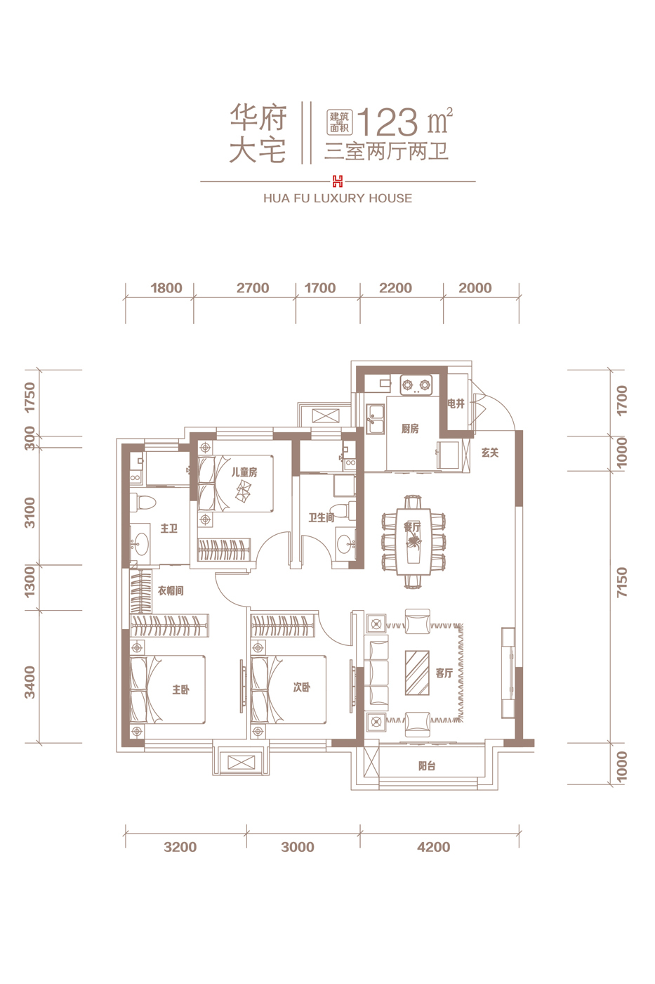 3室2厅2卫-123平米户型图