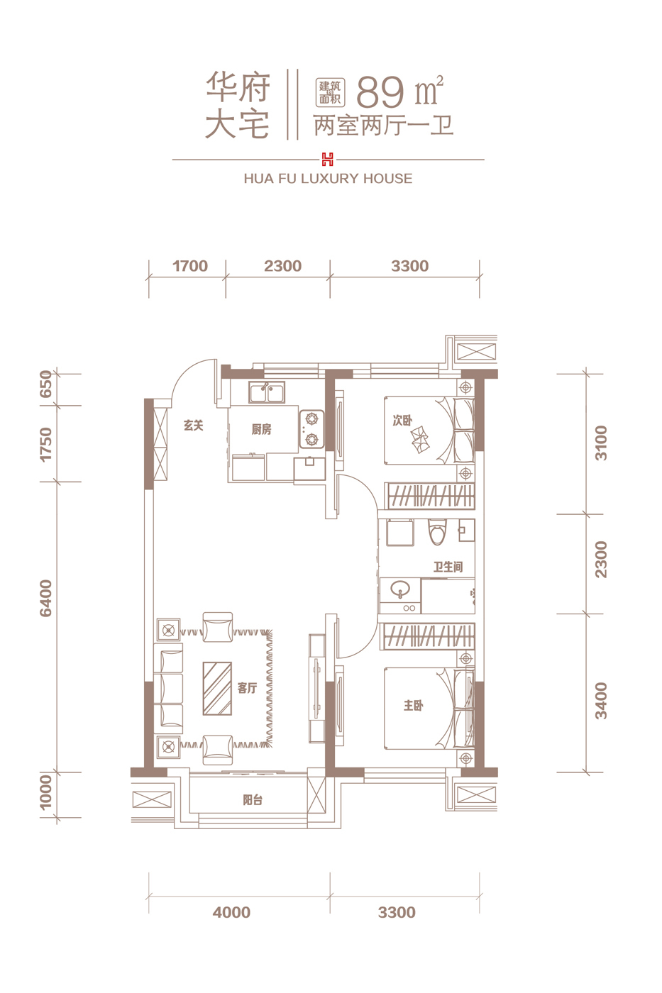 2室2厅1卫-89平米户型图