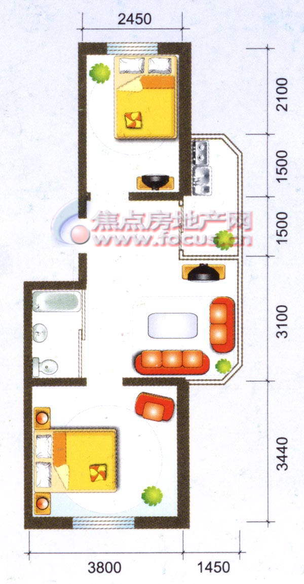 2室1厅1卫-温馨花园二期两室一厅一卫47.40平方米
