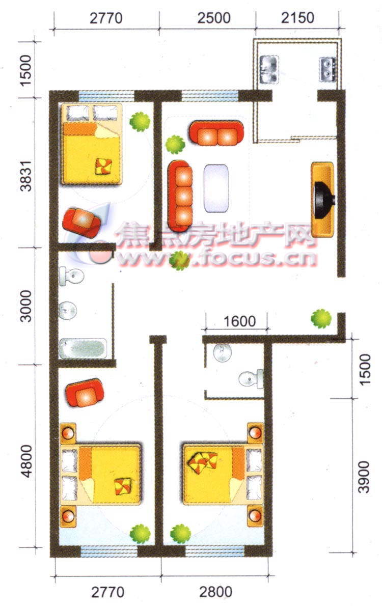 3室1厅2卫-温馨花园二期三室一厅两卫90.40平方米