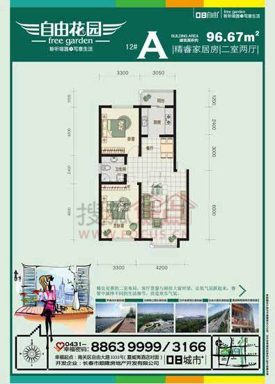 2室1厅1卫-自由花园 12栋 96.67m² 二室一厅一卫 A