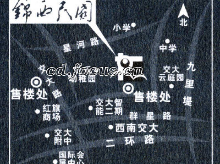 “锦西民园”位于成都市北二环路西南交通大学旁九里居住区的中心腹地,占地103亩,紧临中、小学校、幼儿园、社区文化活动中心、街道办事处、派出所、医院、邮电所、农贸市场和青少年科技公园。