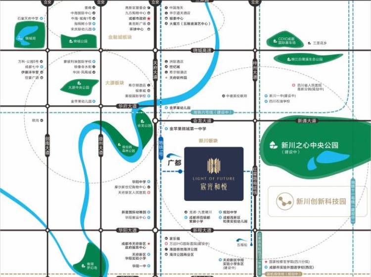 学校:距离项目1km内,优质教育资源环绕——成都师范银都紫藤小学(公办)、金苹果锦城第一中学(私立)、新川科技园规划22所公立学校——13所幼儿园、7所小学、2所中学(来源丨高新区基层治理和社会事业局)