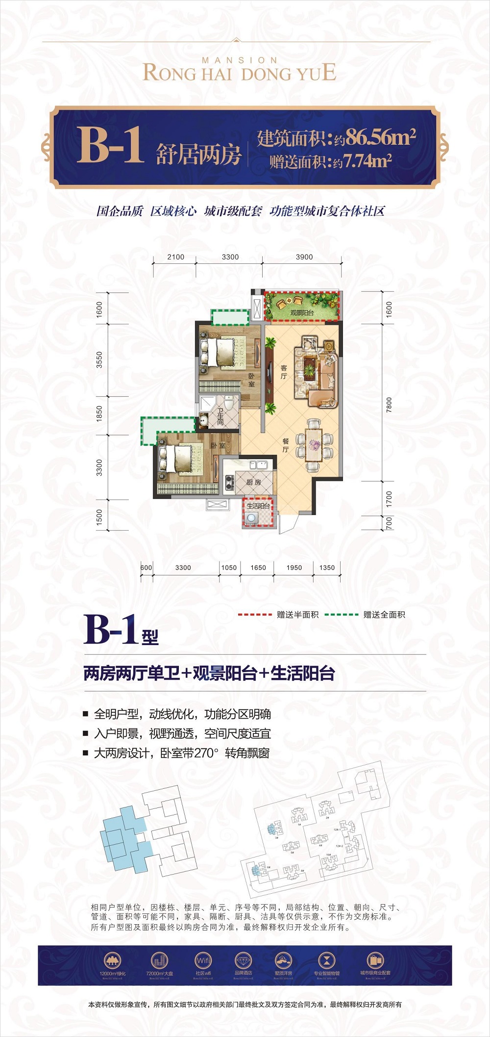 蓉海东悦华府项目位于石板滩镇镇旁,占地50.79亩,总建筑面积为7.2万平方米,花园洋房面积86-143平米。项目规划设计有墅质花园洋房(11F-12F)、升级商业街、品牌幼儿园和品牌酒店。项目是融兴公司打造的石板滩首席功能型城市复合体项目,规模体量大、居住品质高、生活配套完善。