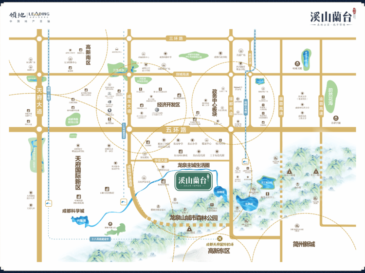 领地溪山蘭台项目是领地集团的TOP级产品,蘭台系3.0升级之作。溪山蘭台项目结合巴蜀文化、城市森林公园山水,打造独具一格的现代新中式风格豪宅,以山、水为形,塑造“大隐隐于市”的悠然生活。