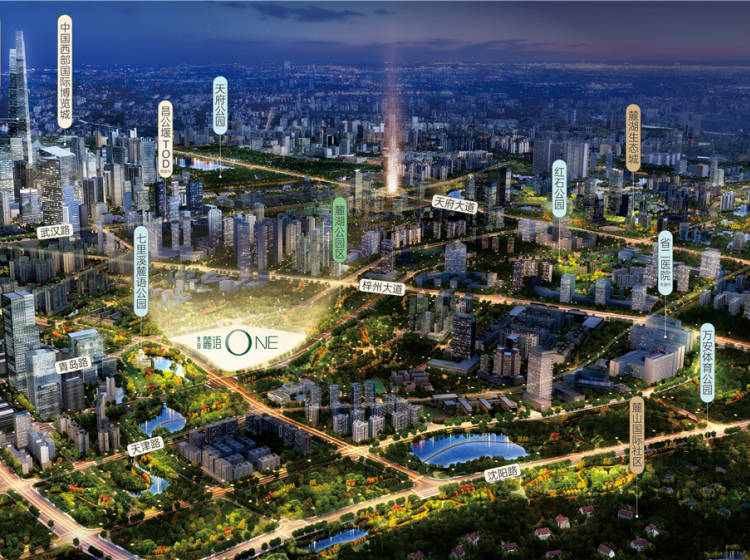 奥园麓语ONE项目坐落于天府新区麓湖公园区,乃成都典型的豪宅区代表。 项目毗邻麓山、麓湖高端社区,近享麓山高尔夫会所、山姆会员店、麓镇、麓客岛等高端生活配套;项目被天府森林公园、万安体育公园、红石公园、七里溪生态绿廊等城市公园环绕,于万亩公园中享鲜氧生活;且项目紧邻投资1980亿堪称中国CBD之最的天府总部商务区,489m一带一路大厦超级地标、西部国际博览城、安达仕凯悦酒店、雪莲堂美术馆、言几又国际文创中心、天府大悦城、天府国际保税商业中心等高级资源汇聚。 项目东邻3000亩青岛路商务区及七里溪麓语公园,西面红石公园、麓湖生态城,北看麓山国际,南望天府总部商务区。 项目总占地111亩,容积率2.0,以高端低密墅居产品为主,为成都奥园继奥园半岛ONE之后打造的天府第二座ONE系豪宅。