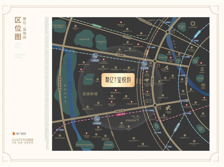 聚亿·玺悦府位于成都市西三环,武侯政务中心旁。武侯新城北区将会形成以政务中心为核心、以电商科技产业为驱动核、以TOD繁华枢纽为重点、以新兴全能配套为支撑、以低密高端地产为主打的宜居新城。