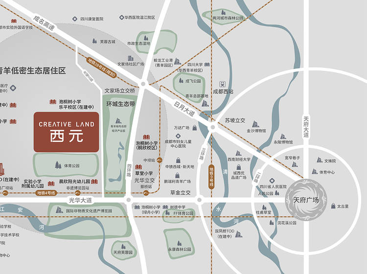 项目位于青羊新城发展中轴的非遗板块,是城西未来的居住中心。