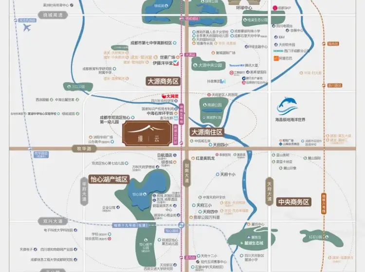 教育:直线3km范围内有43个幼儿园;6个小学,如四川天府新区华阳小学、四川天府新区第四小学、四川天府新区美岸小学、双流区协和实验小学、四川天府新区第十小学等;2个中学:棠湖中学怡心实验学校、四川省双流中学协和实验学校;