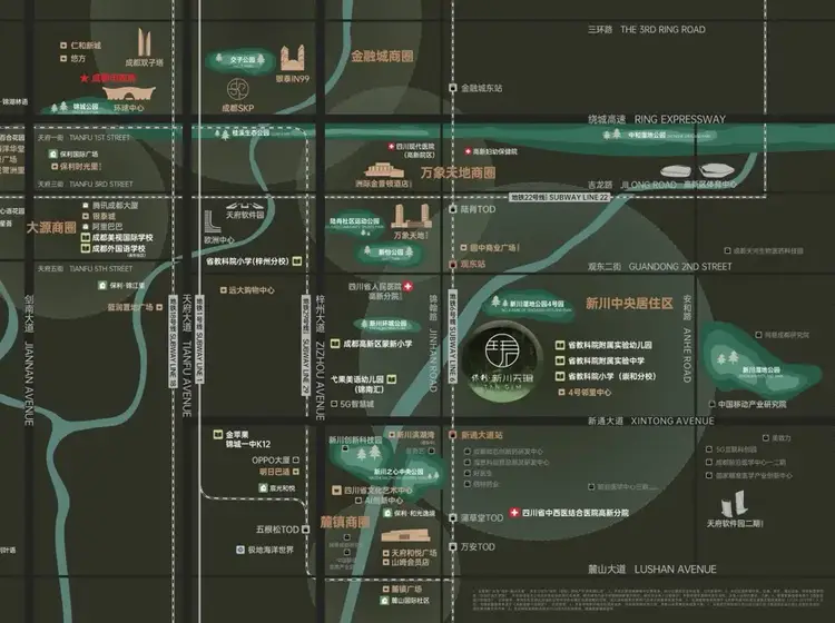 综合医院:直线 3 公里范围内有高新龙翔医院、四川省中西医结合医院高新医院、四川现代医院(高新院区)等。