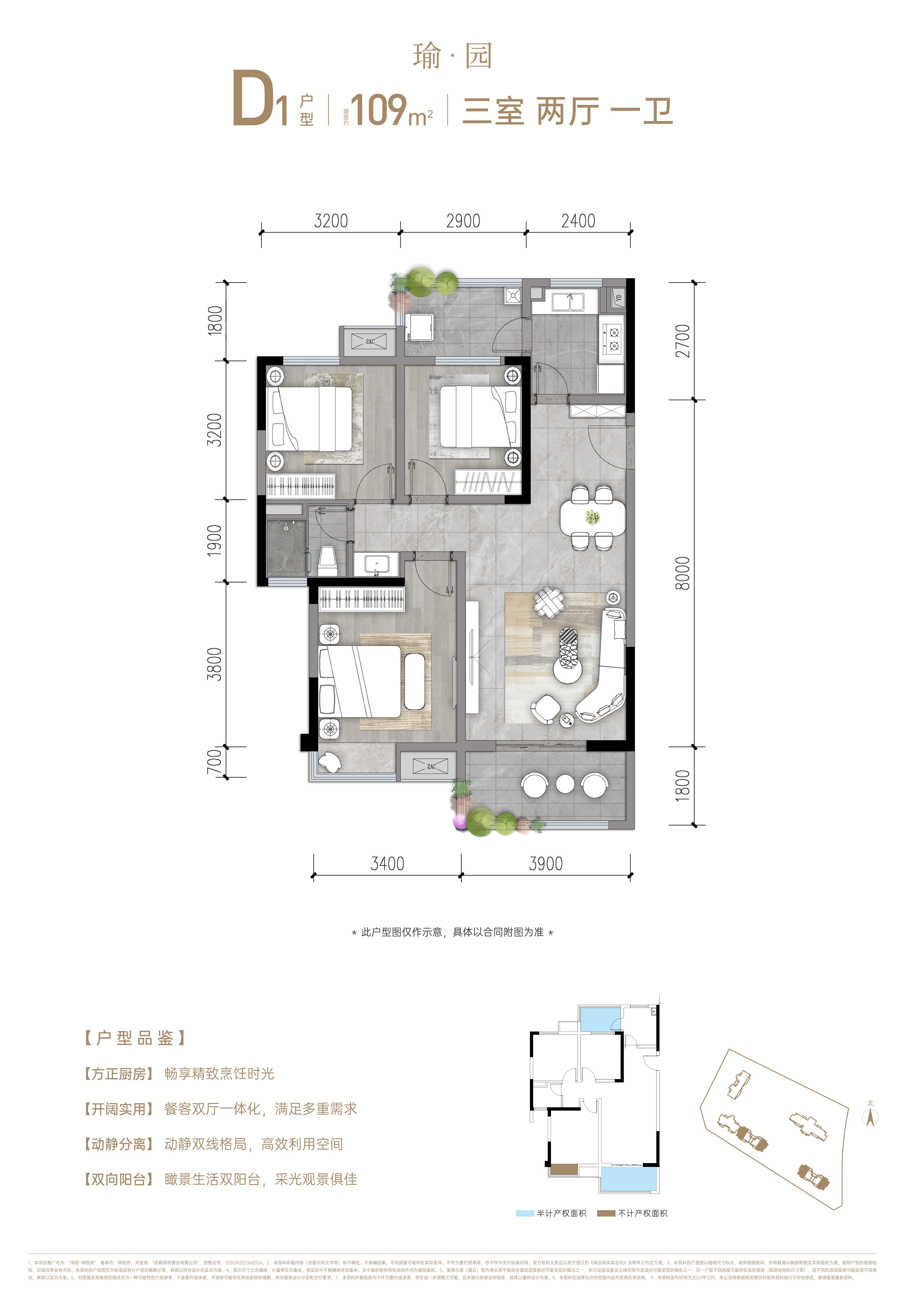 3室2厅1卫-D1-109㎡-三室两厅一卫