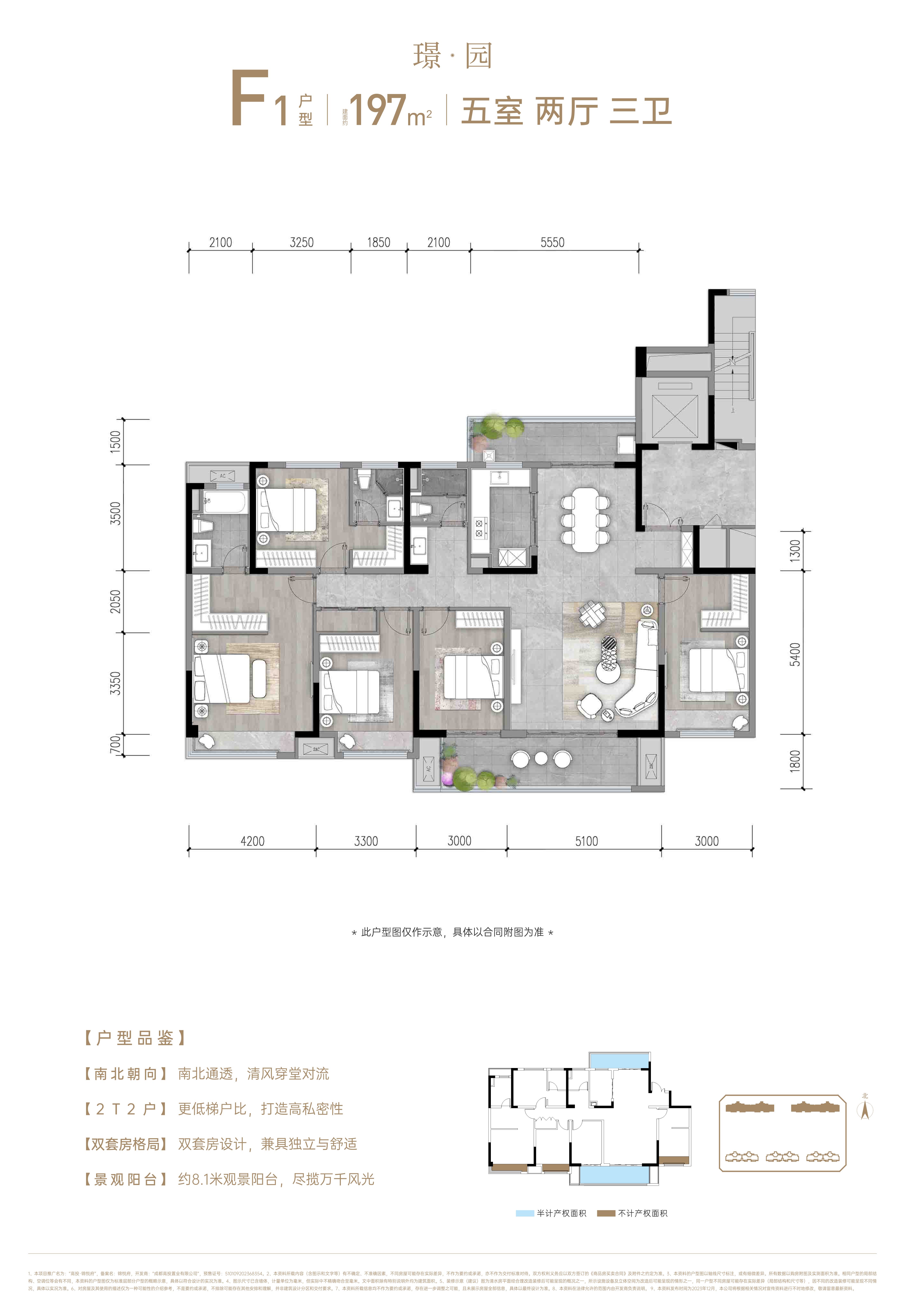 5室2厅3卫-F1户型-197㎡-五室两厅三卫