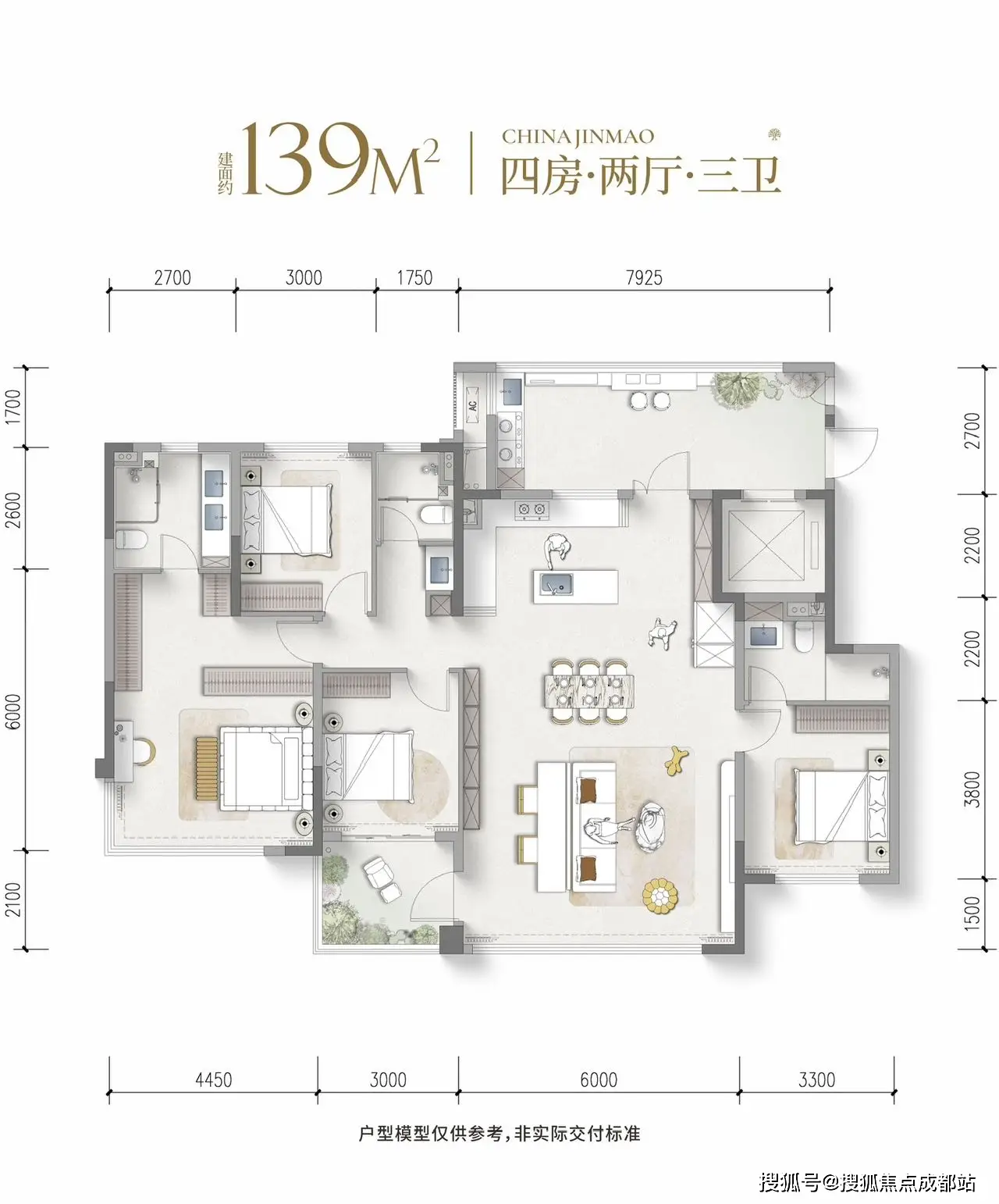 4室2厅2卫-建面139㎡ 四房两厅双卫