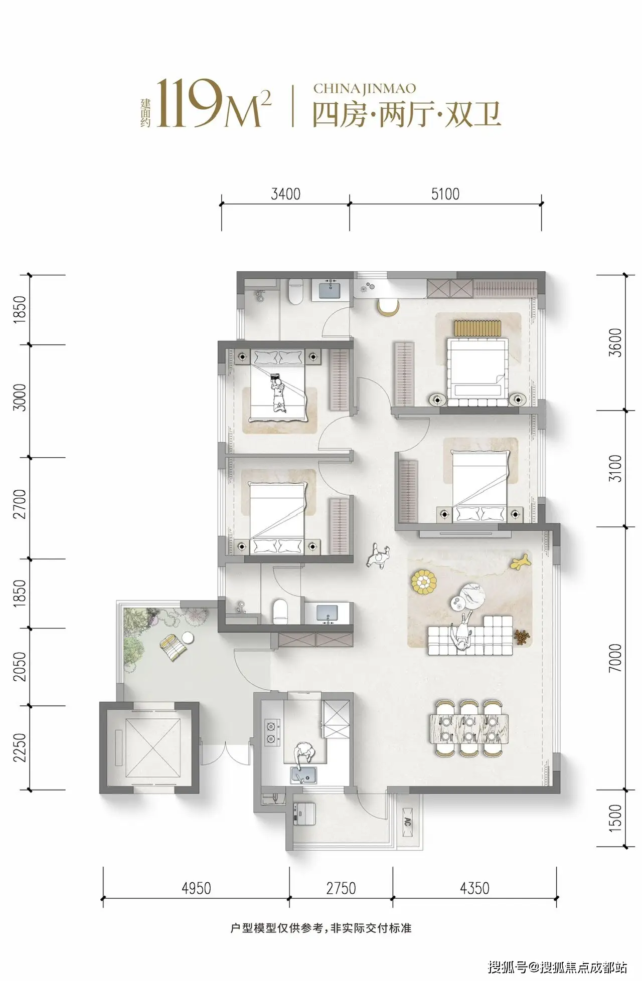 4室2厅2卫-建面119㎡ 四房两厅双卫