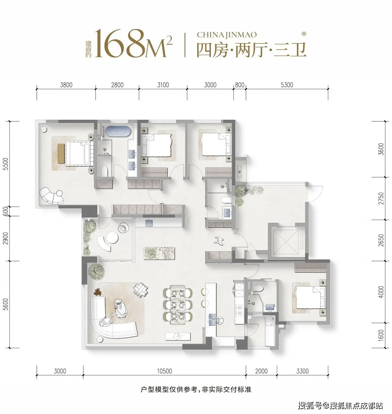 4室2厅2卫-建面118㎡ 四房两厅双卫