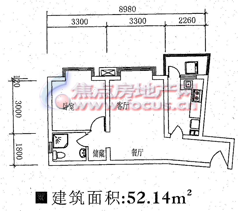 1室2厅1卫-一室两厅单卫52.14平方米